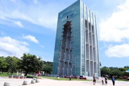 올 3월 개관한 경주엑스포기념관은 건물 자체가 훌륭한 사진배경이다. 현무암을 이어 붙이듯 쌓아 올린 건물 벽면은 일본의 세계적인 건축가 ‘쿠마 켄고’가 경주 대릉원과 주상절리의 부드러운 곡선에서 영감을 받아 디자인했다.