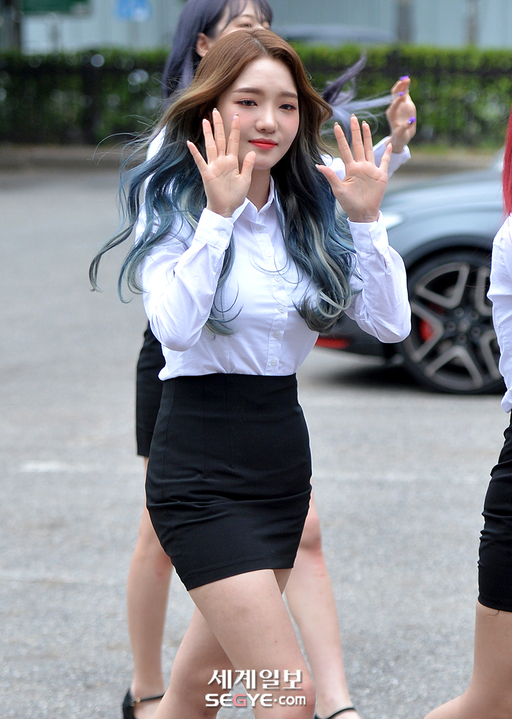 걸그룹 프로미스나인 노지선이 14일 오전 서울 영등포구 여의도동 KBS신관 공개홀에서 진행된 KBS2 '뮤직뱅크'의 리허설에 참석해 포토타임을 갖고 있다.