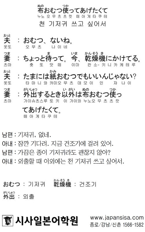 [시사일본어학원의 초단기 일본어 회화] 천 기저귀 쓰고 싶어서