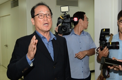 국군기무사령부 개혁위원회 장영달 위원장이 19일 오전 서울 용산구 국방컨벤션에서 열린 기무사 개혁TF 회의에 참석하며 취재진의 질문에 답하고 있다. 이재문기자