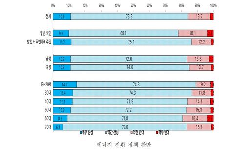 조사 결과, 에너지 전환 정책에 대한 찬반 질문에는 발전소 주변지역 주민의 찬성 비율(86.4%) 일반 국민(78.0%)보다 높게 나왔다.