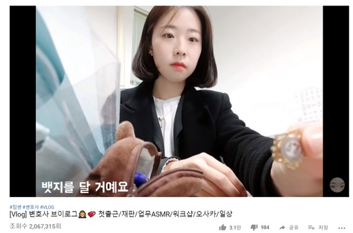 2일 법조계에 따르면 변호사업계 내에서는 유튜브 채널을 직접 운영하며 비법조인들과 소통 기회를 늘리려는 변호사들이 늘어나고 있다. 특징은 기존 방송 프로그램에서 분쟁이 벌어진 상황을 두고 변호사가 패널로 출연해 법률 조언을 해주던 것과는 차원이 다른 콘텐츠로 시청자들의 이목을 끈다는 점이다. 아침에 사무실로 출근해 일하고, 커피숍에 가 차를 마시는 일상을 담은 브이로그(비디오+블로그)가 대표적이다. 별다른 대사가 없는데도 이 영상을 시청하는 구독자가 12만명을 웃돈다.