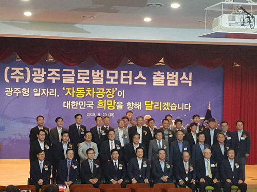 광주시는 이날 광주시 광산구 광주그린카진흥원 대회의실에서 광주글로벌모터스 합작법인 설립을 위한 발기인 총회를 개최했다. 올해 초 광주시와 현대자동차가 투자협약을 맺고 투자자 유치에 나선 지 7개월 만이다. 또 광주형 일자리가 논의된 지 5년 만에 합작법인 출범식을 갖게 됐다.