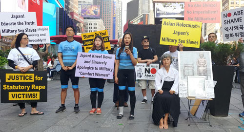 대륙횡단을 마치고 31일 뉴욕 맨해튼의 타임스스퀘어에서 기자회견을 한 이들은 전 세계 수많은 관광객이 보는 앞에서 성명을 낭독하며 “일본 정부는 일본군 위안부 문제에 관련한 정부와 군의 개입을 완전히 인정하고, 피해자들에게 공식적이고 진정성 있는 사죄를 전달하라”고 촉구했다.