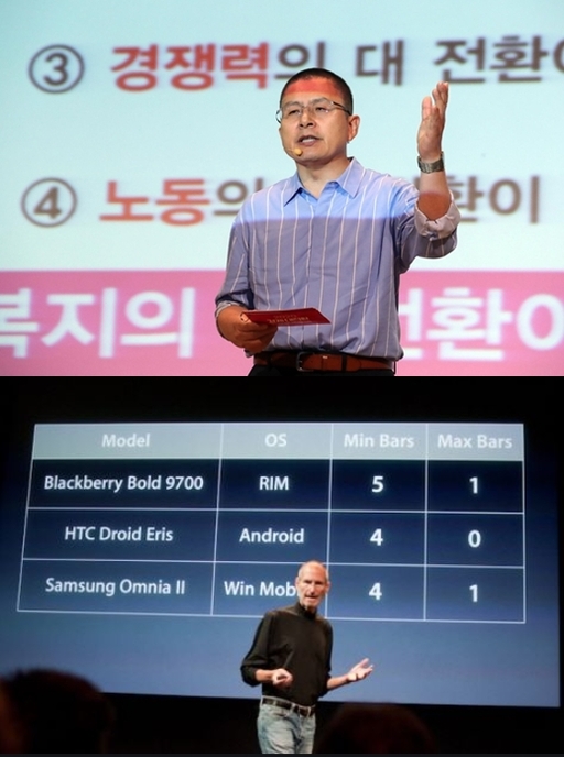 자유한국당 황교안 대표가 세계적인 IT기업의 설립자 故스티브 잡스와같은 변신을 시도했다. 22일 애플 신제품 공개행사와 비슷한 스타일의 PPT 정책인 한국당 새 경제정책론인 ‘민부론(民富論)'을 발표한 것.