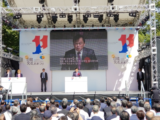 이날 개막식에는 한국 측에서 남관표 주일 한국대사, 노태강 차관, 손경식 축제 실행위원장, 오공태 축제 실행위원장, 노웅래 한일의원연맹 운영위원장, 여건이 민단 중앙본부 단장, 김정수 주일한국기업연합회 회장, 정진수 한국관광공사 도쿄지사장, 일본측에서  후쿠다 야스오(福田康夫) 전 총리, 야마구치 나쓰오(山口那津男) 공명당 대표, 아카바 국토교통상, 가와무라 다케오(河村建夫) 일한의원연맹 간사장, 사사키 미키오(佐佐木幹夫) 축제 실행 위원장, 나카야마 노리히로(中山展宏) 외무성 정무관, 사사키 사야카 문부과학성 정무관 등이 참석했다.