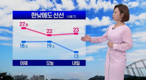 오후 최고기온은 ▲서울 22도 ▲대전 23도 ▲대구 25도 ▲전주 22도 ▲광주 21도 ▲부산 26도 ▲춘천 21도 ▲강릉 21도 ▲제주 22도 ▲울릉도·독도 20도 ▲백령도 16도 등이다.