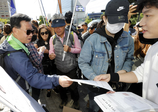 서울대학교 집회 추진위원회(추진위) 소속 동문들이 서울 광화문에서 열린 조국 규탄 집회에 참가해 ‘인턴십 활동예정 증명서’를 배포하는 퍼포먼스를 진행했다.