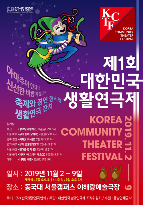 한국생활연극협회는 전국 각 지역의 생활연극을 활성화하고 아마추어 배우들의 연기력 강화와 삶의 질 향상을 목표로, 축제를 겸한 경연 형식의 제1회 대한민국 생활연극제(포스터)를 11월 2∼9일 동안 서울 동국대 이해랑예술극장에서 개최한다.
