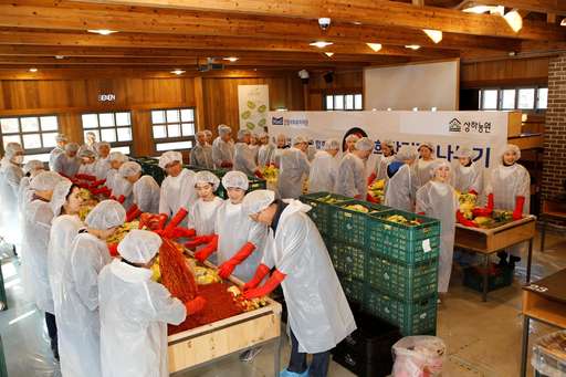 매일유업 조성형 부사장을 포함해 매일유업과 상하농원의 임직원 50여명은 28일 상하농원 체험교실에서 김장을 직접 담그고 고창군청에서 김치 전달식을 가졌다.