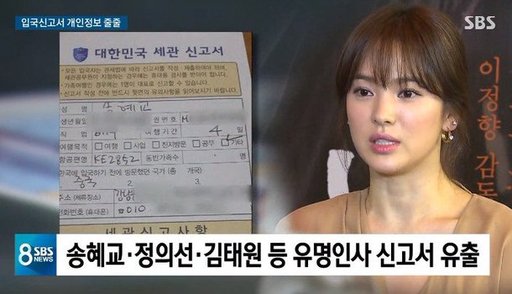 배우 송혜교와 전 국가대표 축구 선수 안정환 등을 포함한 유명인사들의 세관 여행자 휴대품 신고서가 유출됐다.