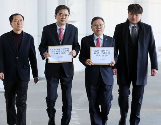 자유한국당은 청와대의 ‘김기현 전 울산시장 선거 개입 의혹’과 ‘유재수 전 부산시 경제부시장(구속) 감찰 무마 의혹‘ 등과 관련해 조국 전 법무부 장관을 비롯한 주요 관계자 10명을 5일 검찰에 고발했다.