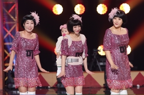 ‘미미미 시스터즈’는 강유미, 오나미, 안소미로 구성된다. 안소미는 작년에 태어난 딸 로아를 업고 등장해 ‘엄마 개그’를 마음껏 펼친다.