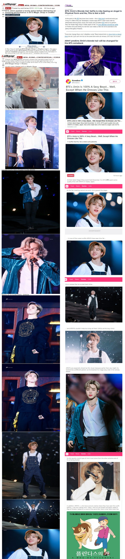 북미매체 '코리아부'도 “지민은 100% 섹시하다. 이렇게 옷을 입었을 때를 제외하고”라며 앙코르 무대에서 지민을 최고 귀여운 어린아이로 만들어버린 '데님 오버롤'과 '뉴스보이캡' 착장에 대해 상세히 서술했다.
