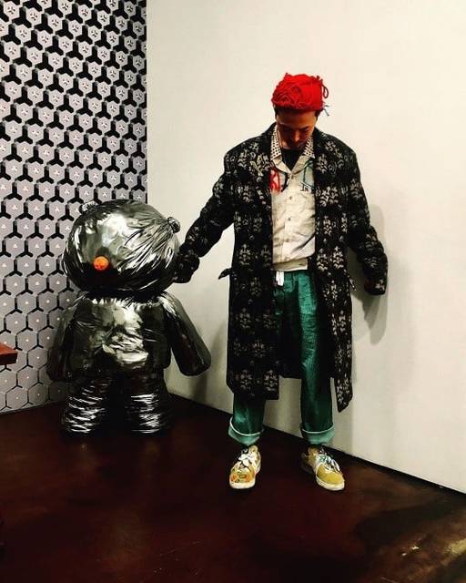 그의 독특한 패션 아이덴티티에 시선이 간다.