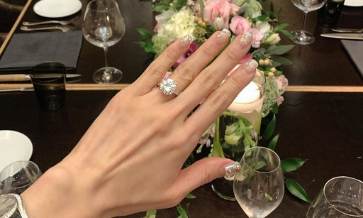 또 꽃장식이 가득한 디너 파티 테이블과, 왼손 약지에 커다란 다이아몬드가 빛나는 반지를 낀 박현선의 손 사진도 올렸다.