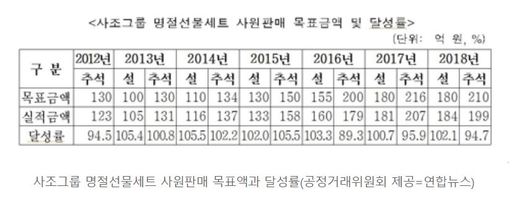 공정위에 따르면 사조그룹은 아예 2012년부터 해마다 명절을 앞두고 '사원판매용 선물세트'를 별도로 출시해 직원들을 유통 경로로 활용했다. 심지어 사원판매 실적을 분석·관리하고 다음 해 사업(경영) 계획에도 반영했다.