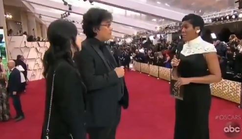 한국일보와 조선일보 등이 10일 보도한 바에 따르면 LA 할리우드에서 열린 아카데미 시상식에 앞서 레드카펫에 선 봉 감독은 abc 방송 진행자로부터 “감독으로서 다른 영화는 영어로 만들었는데 왜 이번 영화는 한국어로 만들었느냐”는 질문을 받았다고 한다.