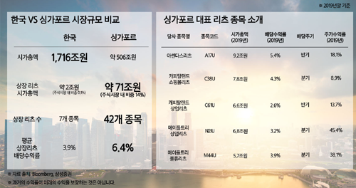 싱가포르 주식시장에 상장된 리츠의 평균 배당 수익률은 6%를 웃돈다. 글로벌 리츠 선진국인 미국, 일본 등의 배당 수익률인 4% 수준과 비교해도 약 2%포인트 높은 수준을 자랑한다.
