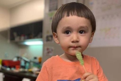사탕을 들고 있는 벤틀리는 새 머리스타일이 마음에 드는지 밝은 표정을 짓고 있다.