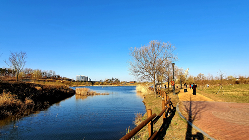 파주 운정호수공원의 가장 큰 매력은 호수다. 아파트에 둘러싸여 있지만 드넓은 호수 덕분에 가슴이 탁 트인다. 호수 주변의 나무테크를 따라 천천히 걸으면서 산책하기 좋다. 또 야트막한 야산을 따라 우듬지탐방로가 조성됐는데 피톤치드를 내뿜는 키 큰 나무들의 머리 부분을 코앞에서 감상하며 숲과 호수를 모두 즐길 수 있다.호숫가를 따라 북쪽으로 걷다 보니 경의중앙선 운정역 쪽으로 수로와 산책로가 이어진다. 수로는 남쪽으로도 야당역까지 길게 이어져 있으니 산책과 조깅, 경보를 즐기는 이들에게는 ‘천국’이겠다.