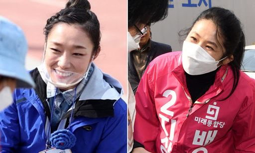 스포츠 클라이밍 국가대표를 지낸 ‘암벽여제’ 김자인은 남편 오영환 민주당 경기 의정부갑 후보(32)의 선거운동 현장에 함께했다. 부부는 의정부 회룡역 앞에 나란히 서 출근길 시민들에 인사하는 등 ‘일심동체’를 보여줬다.