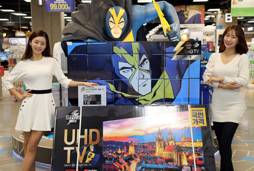 이마트가 일렉트로맨 브랜드로 50만원대 65인치 4K UHD(초고화질) 스마트 TV를 출시한다고 12일 밝혔다. 13일부터 이마트 전국 매장에서 55만9000원에 판매되는 이 TV는 리모컨에 넷플릭스와 유튜브 바로가기 버튼을 탑재했다. 안드로이드 운영체제(OS) 스마트폰 화면을 무선으로 TV에 연결하는 기능도 지원한다.