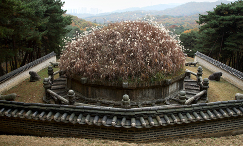 건원릉의 억새는 어떤가. 이만큼 유명한 식물을 꼽기도 어려울 것 같다. 42기의 왕릉 중 능침을 억새로 덮은 곳은 건원릉이 유일한 데다, 그것이 태조 이성계의 유언에 따른 것이라는 이야기로 더욱 유명해졌다. 가을 저녁 무렵, 한창 자란 억새가 바람에 흔들리며 노을과 어울리는 모습은 256명이 선택한 왕릉의 제1경이다.