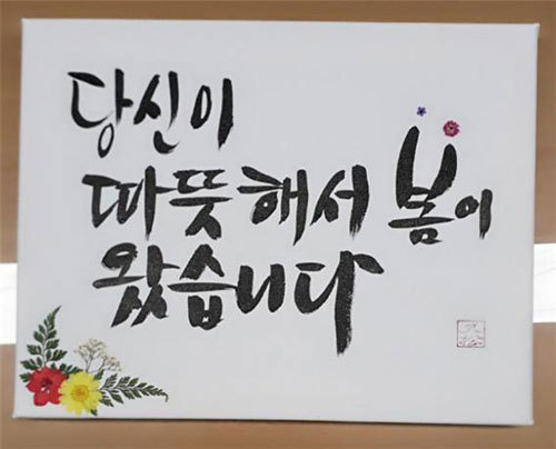 서초구는 취약계층의 ‘마음 방역’을 위해 구 직원들이 만든 ‘플라워 캘리그래피 액자’를 전달한다고 17일 밝혔다. 캘리그래피 액자에는 ‘당신의 꿈을 응원합니다’, ‘당신에게 행복을 선물합니다’ 등 희망을 주는 메시지가 적혀 있으며, 봄꽃이 압화돼 있다. 서초구 관계자는 “장기화되고 있는 코로나19로 답답함을 느끼는 저소득층 가정을 위한 것“이라며 “평소 캘리그래피에 관심이 많던 한 직원의 제안으로 시작돼 사회복지과 전 직원들이 참여했다”고 설명했다.
