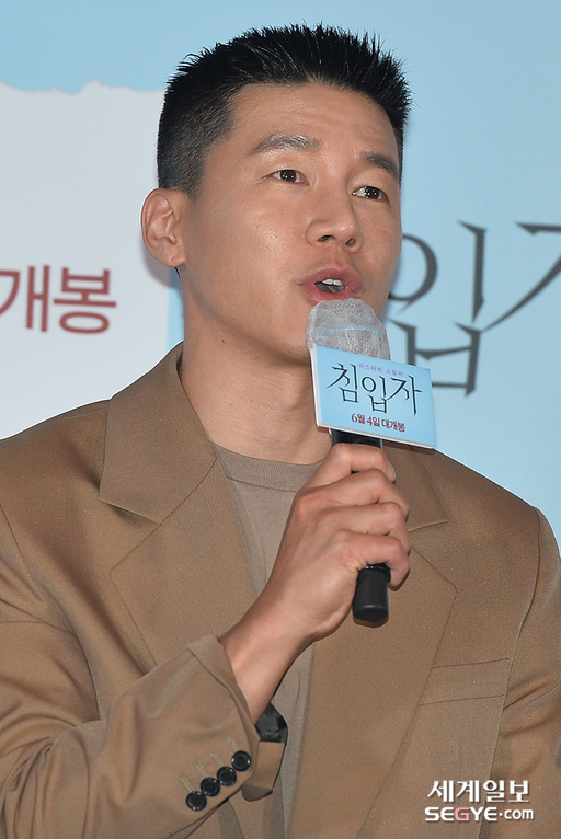 배우 김무열이 27일 오후 서울 용산 CGV에서 열린 영화 '침입자'의 언론시사회에 참석해 인사말을 하고 있다.