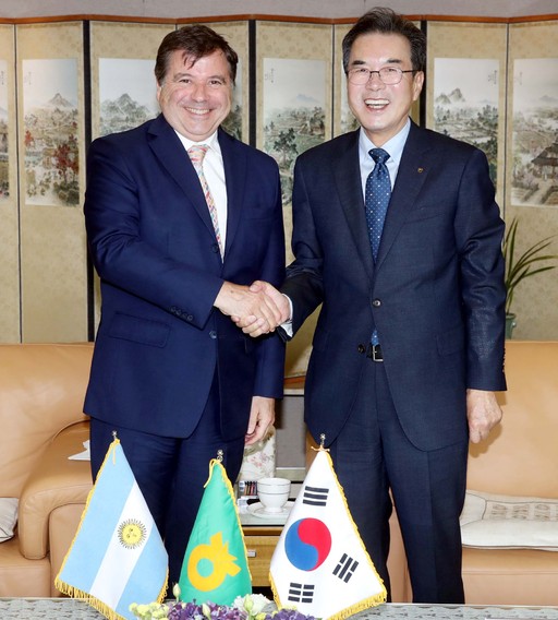 농협중앙회 이성희 회장은 28일 알프레도 카를로스 바스쿠(Alfredo Carlos BASCOU) 주한아르헨티나 대사와 만나 한국 농협과 아르헨티나 간 양국 농업 발전 및 사업협력 방안에 관한 의견을 나누었다.