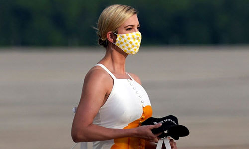 보도에 따르면 도널드 트럼프 미국 대통령의 장녀인 이방카 트럼프 백악관 선임 보좌관은 디자이너가 특별 제작한 마스크를 착용한다. 이방카는 마스크 착용 권고를 무시하는 아버지와 달리 마스크를 꼭 써야 한다고 강조해왔다.