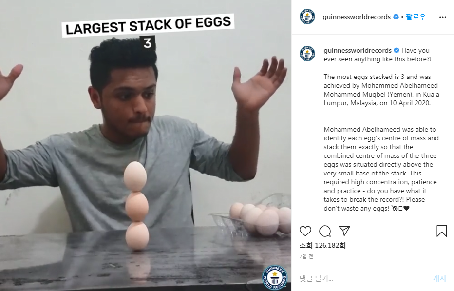 마지막으로 기네스 측은 “당신은 이 기록을 깰 생각이 있는가? 제발 계란 낭비하지 말라”고 덧붙였다.