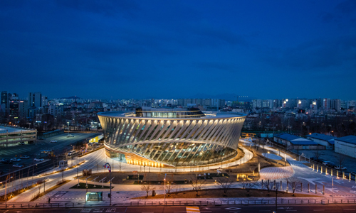 미리 둘러본 항공박물관은 외양부터가 특이했다. 건물의 외부는 항공기 제트 엔진의 터빈을 형상화해 마감했고, 그 사이사이는 투명한 유리창이 설치됐다. 건축물 전체가 엔진이 도는 듯한 역동성을 품었다. 건물을 관통하는 중앙홀 역시 제트 엔진의 터빈 모양을 채용했다. 건물 내외부는 투명 창을 통해 자연스럽게 연결된다. 외부 광장에도 디테일이 있어, 김포공항의 14번과 32번 활주로가 타일로 표현됐다.