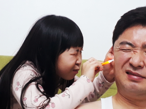 효도하고 싶은 딸... 어버이날 선물로 아빠의 귀를 파주는 것을 실천하는 것으로 효도를 하겠다고 하지만 아빠는 그런 딸에게 귀를 내어주기에는 너무 아픕니다. 아프지만 참고 귀를 내어주는 아빠, 그런 아빠에게 효도하겠다고 귀를 파고 있는 딸의 모습을 사진으로 남겼습니다.