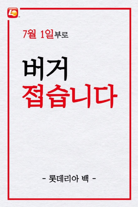 지난 24일부터 롯데리아 몇몇 매장에 ‘7월1일부로 버거 접습니다. 롯데리아 백’이라는 문구가 담긴 포스터가 내걸려 다양한 추측을 낳았는데, 확인 결과 신제품 판촉 광고로 드러났다.