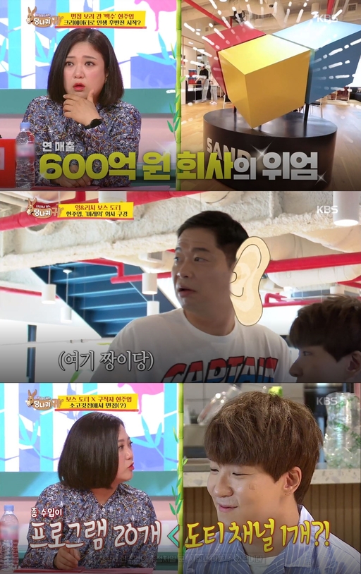 유튜브 크리에이터이자 방송인인 도티(맨 아래 오른쪽 사진·본명 나희선)가 공동 대표로 있는 다중채널네트워크(MCN) 회사인 샌드박스 네트워크의 수입을 방송에서 공개했다.
