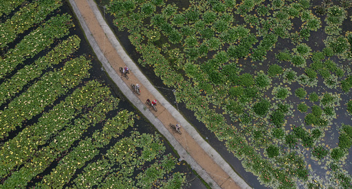 낮 최고 기온이 30도를 웃돌며 무더운 날씨를 보인 8일 오후 경기도 의왕 왕송호수 연꽃습지를 찾은 시민들이 활짝 핀 수련을 감상하고 있다.