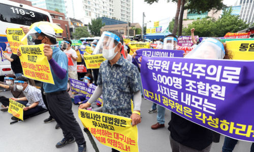 이들 조합원의 시위를 바라보는 시민들의 시선도 곱지 않다. 직장인 최모(50)씨는 “코로나19가 재확산하는 상황에서 100명 이상이 모여 집회를 한다는 것 자체를 이해할 수 없다”고 토로했다.