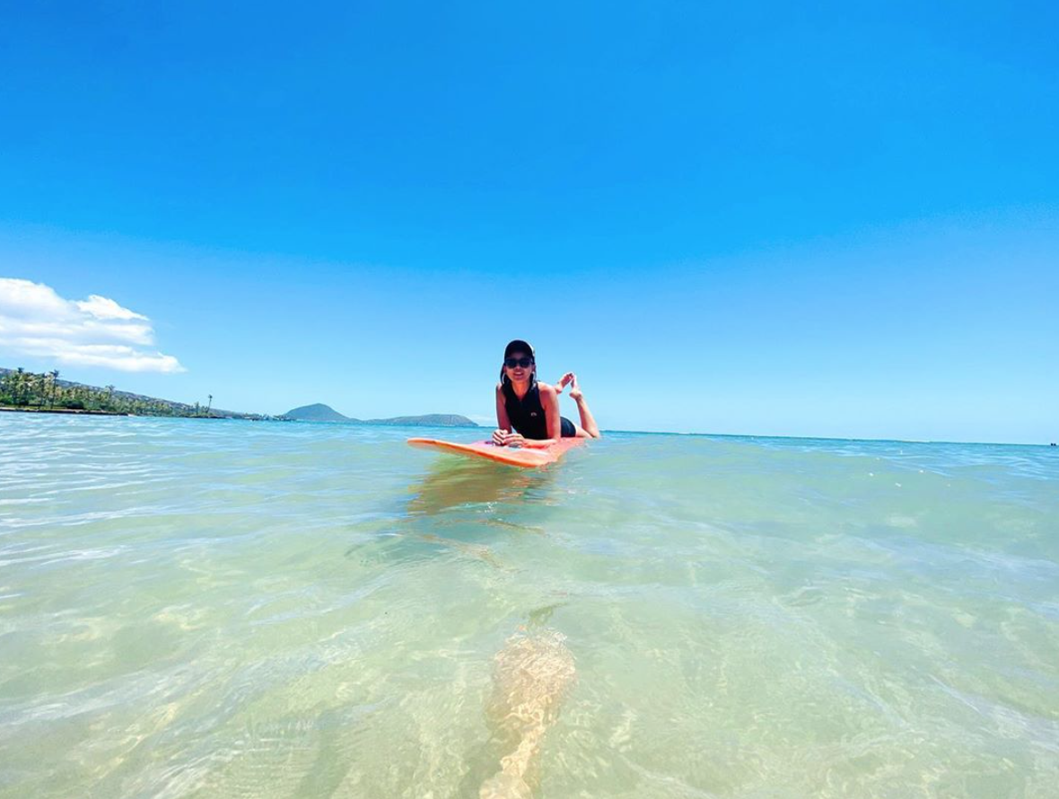 공개된 사진 속 야노 시호는 청명한 바다에서 서핑을 즐기고 있다. 뒤로 보이는 탁 트인 푸른 하늘도 보는 이들의 기분을 좋게 만든다.