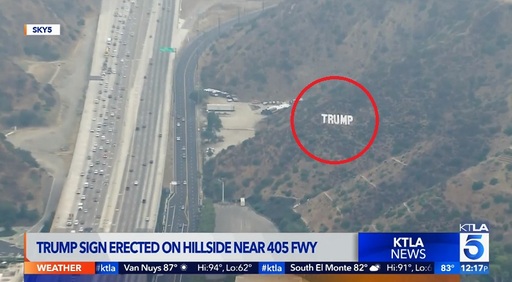 7일(현지시간) 미국 LA타임스 등 외신들에 따르면 전날(6일) 405번 고속도로가 지나는 세풀베다 고갯길 언덕 중턱에 트럼프의 성인 ‘TRUMP’ 철자 간판이 등장했다.