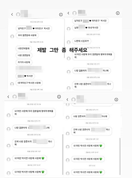 이에 박시연은 스트레스를 호소하며 악성 DM 전송 중단을 요청했다.