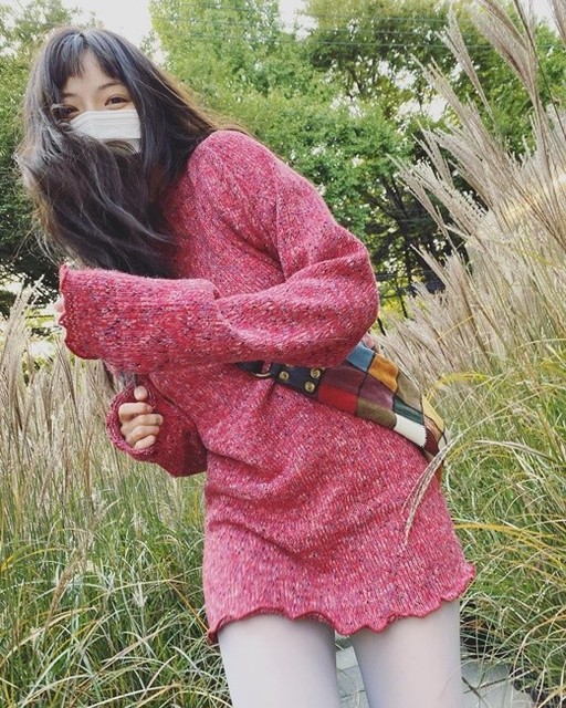 현아는 마스크를 사이 드러나는 귀여운 눈웃음과 함께 현아의 군살 없는 몸매가 팬들의 눈길을 끌고 있다.