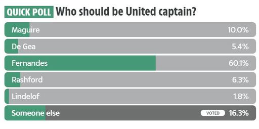 더 선은 주장직 후보로 브루노 페르난데스(포르투갈), 매과이어, 다비드 데 헤아(스페인) 골키퍼, 마커스 래시포드(잉글랜드), 빅토르 린델뢰프(스웨덴)를 후보로 올렸는데, 페르난데스가 현 주장인 매과이어를 압도적인 차이로 제치고 60.1%를 기록하며 1위를 차지했다.