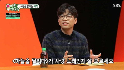 이어 서장훈이 “‘다행이다’는 그런 줄 알고 있었는데, ‘하늘을 달리다’가 사랑 노래인 줄 처음 알았다”며 놀라는 모습을 보였고 이적은 “‘하늘을 달리다’가 사랑 노래인지 잘 모르신다”고 언급했다.