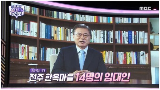 문 대통령은 지난 9일 오후 11시 방송된 MBC 교양프로그램 ‘힘내라 위(We)대한 여러분’에서 영상메시지를 통해 “전주 한옥마을에 계시는 김부영 사장님을 비롯한 열네명의 건물주 임대인 분들을 칭찬해드리고 싶다”고 말했다.