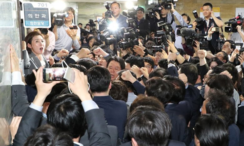 송씨는 “오전부터 문이 막혀 있었고 오후 1시쯤에는 밖으로 나가려고 했지만 한국당 의원들이 몸싸움을 하며 막아 나가지 못했다”며 “발이 끼어 찰과상을 입은 사람이 생기는 등 치열하게 몸싸움을 벌였다”고 회상했다.