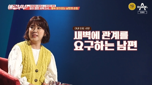 이날 ‘속터뷰’ 의뢰인인 박지현은 “새벽 3시 정도에 자꾸 남편이 관계를 요구한다”고 언급하며 “깊이 잠들었는데 깨 보면 손이 바쁘고, 그렇게 관계를 하고 나면 제가 다음 날 체력이 달린다”고 고백했다.