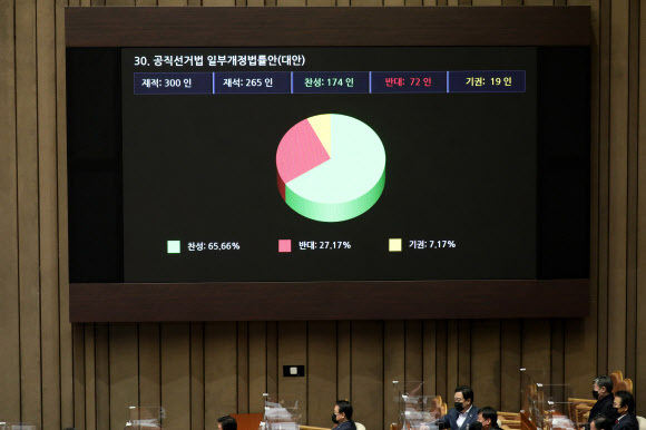 비례대표 전략공천을 금지하는 내용을 담았던 공직선거법 조항이 1년 만에 사라졌다. 거대 양당의 담합 속에 ‘비례대표국회의원선거 후보자 추천절차 법정화’를 폐지했기 때문이다.