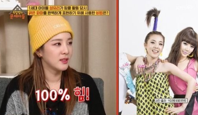 그동안 무대에서 독특한 헤어스타일로 주목받아온 산다라박은 “야자수 머리는 다들 장치가 있는 줄 아시는데 100% 힘이다”라고 설명했다.